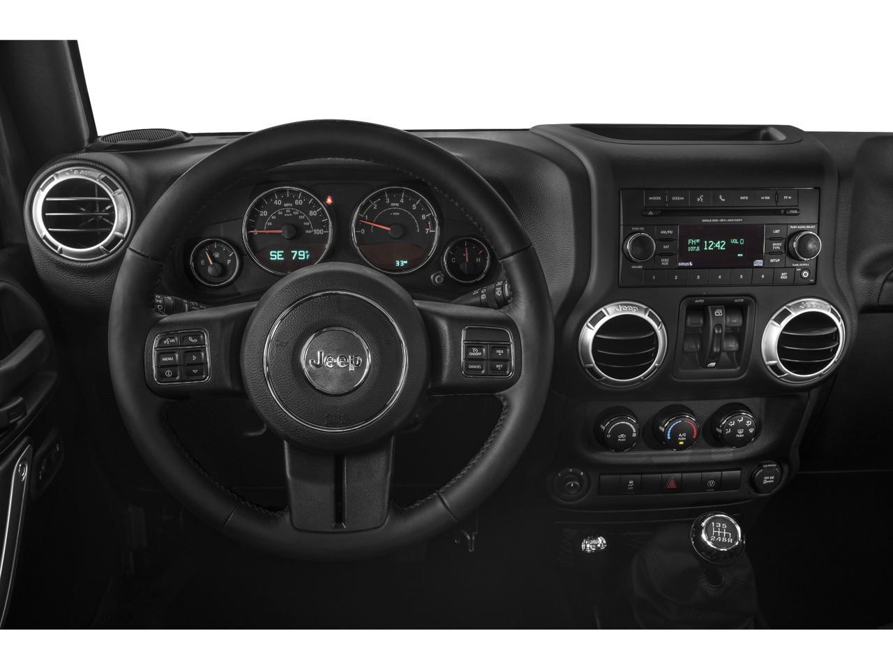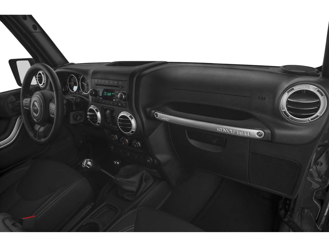 This Wrangler is well Equipped with Connectivity Group (Tire Pressure Monitoring Display and Vehicle Information Center), Max Tow Package, Mopar Chrome Edition Group (Chrome Fuel Filler Door, Mopar Chrome Exhaust Tip, MOPAR Chrome Taillamp Guards, and Mopar Chrome Tubular Side Steps), Mopar Premium Chrome Group (Bright Grille and Chrome Exterior Mirrors), Quick Order Package 23G, Quick Order Package 24G, Trailer Tow Group (Class II Receiver Hitch and Trailer Tow w/4-Pin Connector Wiring), 18 x 7.5 7-Spoke Polished Aluminum Wheels, 18 x 7.5 Polished Satin Carbon Wheels, 4-Wheel Disc Brakes, 40GB Hard Drive w/28GB Available, 5-Year SIRIUSXM Travel Link Service, 6.5 Touch Screen Display, 8 Speakers, ABS brakes, Air Conditioning, Alloy wheels, Alpine 9-Speaker w/All Weather Subwoofer, AM/FM radio, Audio Jack Input for Mobile Devices, Auto-dimming Rear-View mirror, Brake assist, CD player, Cloth Bucket Seats, Compass, Driver door bin, Driver vanity mirror, Dual front impact airbags, Electronic Stability Control, Front anti-roll bar, Front Bucket Seats, Front Center Armrest w/Storage, Front fog lights, Front reading lights, Fully automatic headlights, GPS Navigation, Heated door mirrors, Heated Front Seats, Heavy Duty Suspension w/Gas Shocks, Illuminated entry, Integrated roll-over protection, Leather steering wheel, Leather Wrapped Steering Wheel, Low tire pressure warning, Occupant sensing airbag, Outside temperature display, Panic alarm, Passenger door bin, Passenger vanity mirror, Power door mirrors, Power steering, Power windows, Radio data system, Radio: Uconnect 130 AM/FM/CD/MP3, Radio: Uconnect 430N CD/DVD/MP3/HDD/NAV, Rear anti-roll bar, Remote keyless entry, Remote Start System, Remote USB Port, Security system, SIRIUSXM Travel Link, Speed control, Split folding rear seat, Steering wheel mounted audio controls, Tachometer, Tilt steering wheel, Traction control, Trip computer, and Variably intermittent wipers.