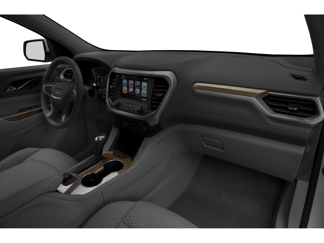 This Acadia is well Equipped with Preferred Equipment Group 4SA, FWD, Jet Black Leather, 155 Amp Alternator, 18 x 7.5 Aluminum (4) Wheels, 3rd row seats: split-bench, 4-Wheel Disc Brakes, 6-Passenger (2-2-2 Seating Configuration), 8 Speakers, 8-Way Power Front Passenger Seat Adjuster, ABS brakes, Air Conditioning, Alloy wheels, AM/FM radio: SiriusXM, Apple CarPlay/Android Auto, Auto-dimming door mirrors, Auto-dimming Rear-View mirror, Automatic temperature control, Bose Premium 8-Speaker System, Brake assist, Bumpers: body-color, Compass, Delay-off headlights, Driver door bin, Driver vanity mirror, Dual front impact airbags, Dual front side impact airbags, Electronic Stability Control, Emergency communication system: OnStar and GMC connected services capable, Exterior Parking Camera Rear, Four wheel independent suspension, Front anti-roll bar, Front Bucket Seats, Front Center Armrest, Front dual zone A/C, Front fog lights, Front License Plate Bracket, Front reading lights, Fully automatic headlights, Garage door transmitter, Heated door mirrors, Heated Driver & Front Passenger Seats, Heated front seats, Illuminated entry, Knee airbag, Low tire pressure warning, Occupant sensing airbag, Outside temperature display, Overhead airbag, Overhead console, Panic alarm, Passenger door bin, Passenger vanity mirror, Perforated Leather-Appointed Seat Trim, Power door mirrors, Power Driver Lumbar Control Seat Adjuster, Power driver seat, Power Liftgate, Power Passenger Lumbar Control Seat Adjuster, Power passenger seat, Power steering, Power windows, Premium audio system: GMC Infotainment System, Radio data system, Radio: AM/FM w/8 Diagonal Color Touch Screen, Rear air conditioning, Rear anti-roll bar, Rear reading lights, Rear window defroster, Rear window wiper, Remote keyless entry, Roof rack: rails only, Security system, SiriusXM Radio, Speed control, Speed-sensing steering, Spoiler, Steering wheel mounted audio controls, Stop-Start Engine Control System, Tachometer, Telescoping steering wheel, Tilt steering wheel, Traction control, Trip computer, Variably intermittent wipers, and Voltmeter.