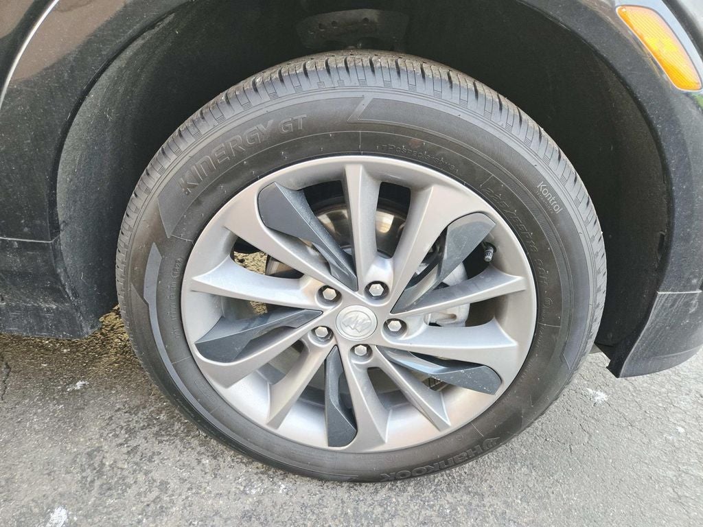 This Encore GX is well Equipped with Hands-Free Power Liftgate Package (Hands Free Power Liftgate), Preferred Equipment Group 1SD (Heated Driver & Front Passenger Seats), Safety Package II (Lane Change Alert w/Side Blind Zone Alert and Rear Cross Traffic Alert), Sport Touring Package (18 Aluminum Wheels, Body Color Rocker Moldings, Body-Color Bodyside Moldings, Custom Grille w/Red Accents, Red Front & Rear Bumper Protective Molding, Sport Front Bumper w/Red Accents, Sport Rear Bumper w/Red Accents, and Sport Touring Badge), Encore GX Select, 4D Sport Utility, ECOTEC 1.3L Turbo, CVT, FWD, Ebony Twilight Metallic, Ebony With Ebony Interior Accents Cloth, 18 Machined Aluminum Wheels, 2 USB Ports w/Auxiliary Input Jack, 2-Way Power Driver Lumbar Control, 4-Way Manual Passenger Seat Adjuster, 4-Wheel Disc Brakes, 5.45 Final Drive Axle Ratio, 6 Speakers, 8-Way Power Driver Seat Adjuster, ABS brakes, Air Conditioning, Alloy wheels, AM/FM radio: SiriusXM, Auto High-beam Headlights, Automatic temperature control, Brake assist, Bumpers: body-color, Cloth w/Leatherette Seat Trim, Compass, Delay-off headlights, Driver door bin, Driver vanity mirror, Dual front impact airbags, Dual front side impact airbags, Electric Auxiliary Heating/Defroster, Electronic Stability Control, Emergency communication system: OnStar and Buick connected services capable, Enhanced Performance 6-Speaker System, Front anti-roll bar, Front Bucket Seats, Front Center Armrest, Front dual zone A/C, Front fog lights, Front License Plate Bracket, Front reading lights, Front wheel independent suspension, Fully automatic headlights, Heated door mirrors, Heated front seats, Illuminated entry, Knee airbag, Low tire pressure warning, Not Equipped w/Driver & Fr Passenger Heated Seats, Occupant sensing airbag, Outside temperature display, Overhead airbag, Overhead console, Panic alarm, Passenger door bin, Passenger vanity mirror, Power door mirrors, Power driver seat, Power steering, Power windows, Radio data system, Radio: 8 Diagonal Buick Infotainment System, Rear reading lights, Rear seat center armrest, Rear side impact airbag, Rear window defroster, Rear window wiper, Remote keyless entry, Ride & Handling Suspension, Security system, SiriusXM Radio, Speed control, Speed-sensing steering, Split folding rear seat, Spoiler, Steering wheel mounted audio controls, Tachometer, Telescoping steering wheel, Tilt steering wheel, Traction control, Trip computer, Variably intermittent wipers, Wheel Lock Kit (LPO), and Wireless Apple CarPlay/Wireless Android Auto.