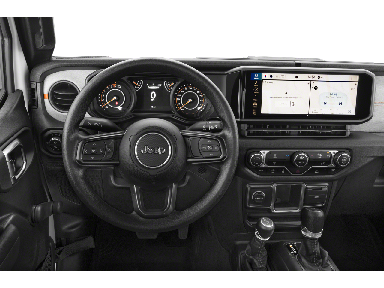 Step inside the Gladiator, and you'll be greeted by a spacious and well-appointed interior. The premium-wrapped steering wheel, heated front seats, and heated steering wheel provide a luxurious touch, while the 12.3-inch Uconnect 5 touchscreen display keeps you connected and entertained. With seamless integration of Apple CarPlay and Android Auto, you can stay connected on the go.