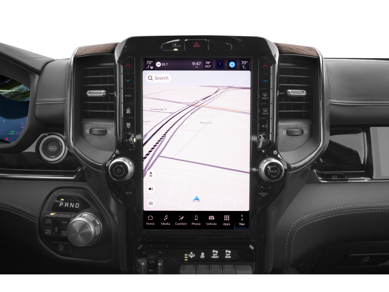 The 3.0L I6 engine and 8-speed automatic transmission provide a powerful yet efficient performance, delivering 15 city/21 highway MPG. This Ram 1500 also boasts an impressive array of advanced safety and technology features, including Smartphone as a Key Capability, Evasive Steer Assist, Intersection Collision Assist System, and a stunning 14.4-inch Uconnect 5 Navigation display.